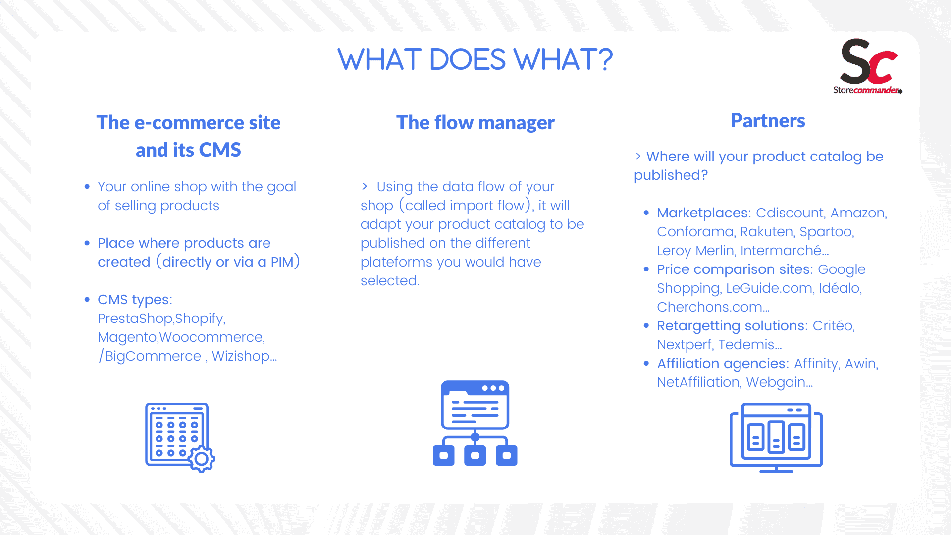 Upstream from the flow management, as an e-merchant, it'll be necessary to structure and organize the data in the backoffice of your site. And this is where Store Commander comes on the scene.