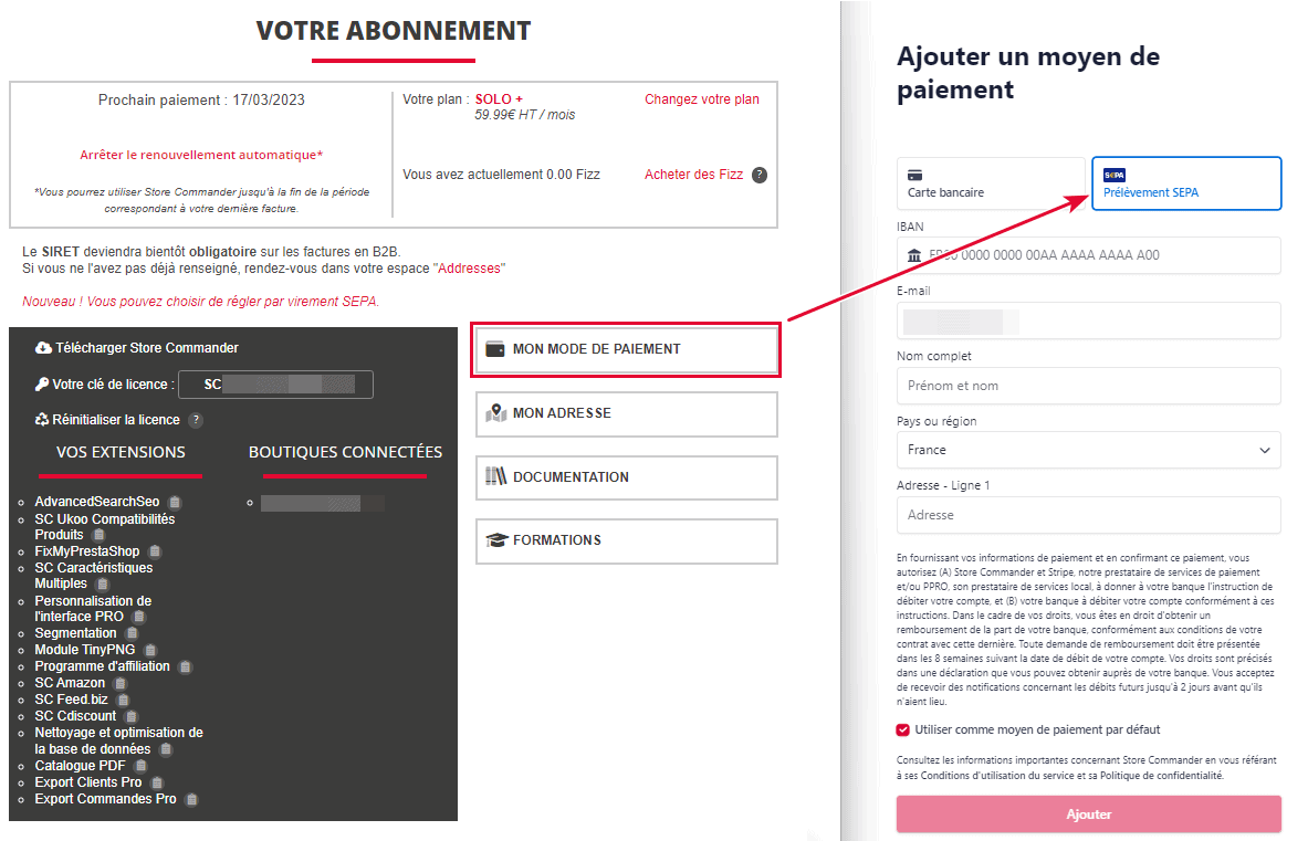 Store Commander vous donne désormais la possibilité de choisir le moyen de paiement pour régler votre abonnement Sc.
