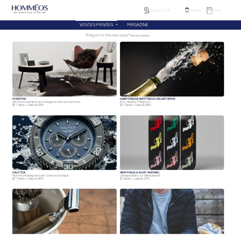 La vente privée en ligne est un secteur particulier, exigeant au niveau de la gestion du back-office puisque, par définition, les produits sont éphémères et n’ont pas vocation à rester longtemps sur le site. Un nouvel acteur dans ce domaine, hommeos.com, est le seul site spécifiquement dédié aux hommes.