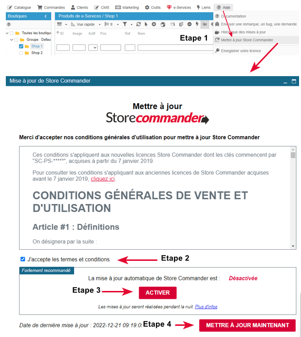 En mode automatique, Store Commander se mettra à jour sans action de votre part à 6h du matin, le lendemain de la publication de la nouvelle version.