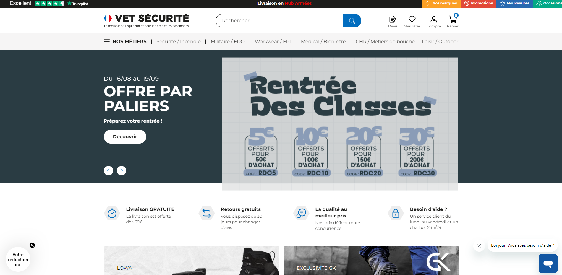 E. Marot : "Vet Sécurité est une entreprise spécialisée dans la vente en ligne d'équipements pour les professionnels et les passionnés. Nous couvrons plus de 6 grands univers et répondons aux besoins de plus de 80 métiers différents. Nous nous concentrons principalement sur la fourniture d'équipements de sécurité et de protection pour divers secteurs d'activité. Notre vaste catalogue permet d'équiper nos clients de la tête aux pieds, assurant leur sécurité et leur confort."